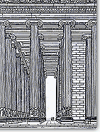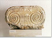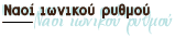 Ο τρίτος μεγάλος ναός της αρχαϊκής Iωνίας, ο ναός του Απόλλωνα στα Δίδυμα, κατασκευάστηκε μεταξύ του 540 και 520 π.Χ. και καταστράφηκε από τους Πέρσες το 494 π.Χ. Σύμφωνα με το αποκατεστημένο πλάνο του ήταν δίπτερος με 21Χ8 κίονες. Είχε ανάγλυφες μορφές στη βάση των κιόνων και ολόγλυφες σφίγγες στις τέσσερις γωνίες του επιστυλίου. Το εσωτερικό του ήταν αστέγαστο και περιέκλειε ένα δεύτερο ιερό που είχε τη μορφή μικρού πρόστυλου εν παραστάσι ναού. Το σύνολο ανακατασκευάστηκε με πολλές προσθήκες στα ελληνιστικά χρόνια. Ένα από τα παλαιότερα δείγματα του ιωνικού ρυθμού στις Kυκλάδες αποτελεί ο εκατόμπεδος στα Ύρια της Νάξου, που κατασκευάστηκε γύρω στα 580 με 570 π.Χ., ήταν πρόστυλος τετράστυλος και είχε ένα άδυτο για την τέλεση της μυστηριακής λατρείας. Από κάποιους άλλους ναούς της Νάξου και της Πάρου σώζονται τα μαρμάρινα περίθυρα με ύψος έως και 6 μέτρα. | ![]() |
