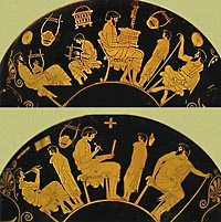 H στοιχειώδης σχολική εκπαίδευση περιλάμβανε τρεις τομείς διδασκαλίας: τα γράμματα, τη γυμναστική και τη μουσική.
