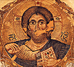The mosaic decoration, quite badly damaged, is preserved only in the central dome of the church. The centre of the dome