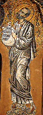 is occupied by a bust of Christ Pantokrator. Exactly underneath, around the drum of the cupola, between the windows, are portrayed the full-length figures of twelve prophets and among them celestial powers (seraphim and cherubim). In the open scrolls held by the prophets are inscribed passages from the Old Testament relating to their prophecies. The delicate proportions of the forms, the boldness of the chromatic combinations, the liveliness and expressiveness of the countenances and the skilful manner in which the figures have been incorporated into the architectural space, are the basic features that characterise the mosaics. These features herald the stylistic developments of the second phase of Palaiologan art. The connection of Anna Palaiologina to the Capital leades us to assume that the craftsmen who created these works had come from Constantinople. According to the inscription, the mosaics and the church are dated between 1294 and 1296.