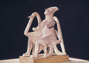 Είμαι ο αρπιστής από την Κέρο, ένα όμορφο μικρονήσι των Κυκλάδων. Εσείς με βλέπετε καθισμένο αναπαυτικά να παίζω την άρπα μου, αλλά πού να ξέρατε πόσα ταξίδια έχω κάνει από το 2700 π.Χ. περίπου, που χρονολογείται η ύπαρξή μου... Οι αρχαιολόγοι με κατατάσσουν στα μαρμάρινα πρωτοκυκλαδικά ειδώλια. Ο ανώνυμος δημιουργός μου προσπάθησε να εκφράσει τη λιτή και ελεύθερη ζωή του νησιώτη, ο οποίος, για να μπορέσει να επιβιώσει στις συχνά πολύ αντίξοες συνθήκες της πατρίδας του, είναι σε όλα του μετρημένος. Άλλα ειδώλια σαν εμένα αναπαριστούν άνδρες κυνηγούς και πολεμιστές, σκηνές ομαδικών παιχνιδιών με δύο ή τέσσερις παίκτες και πολλές, πάρα πολλές γυναίκες! Φαίνεται πως οι καλλιτέχνες της εποχής τούς είχαν ιδιαίτερη αδυναμία! Παρατηρώντας τα έργα τους, θα διαπιστώσετε ότι το κεφάλι είναι συνήθως γερμένο ελαφρά προς τα πίσω και τα μπράτσα διπλωμένα κάτω από το στήθος. Επίσης, η μύτη, το περίγραμμα των ματιών και τα δάχτυλα διαγράφονται με μεγάλη πλαστικότητα, ενώ τα στολίδια τους χρωματίζονται με κόκκινη ώχρα ή γαλάζιο αζουρίτη, για να ξεχωρίζουν. Η τέχνη αυτή θεωρείται μοναδική και αξεπέραστη μέχρι και σήμερα!