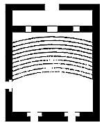 The edifice had four entrances, two located at the front facade, one at the flank and one at the back, all of them leading directly to the auditorium, which could accomodate as many as 200 persons. The auditorium had three entrances, two located at the front facade, and one at the flank, all of them leading directly to the auditorium. An oblong antichamber, located behind the highest row of seats was connected to the auditorium through three narrow doors anf led to the hind entrance of the edifice. The buildings, bears great resemblance to the Odeum of Agrippa in Athens. Its remains comprise only foundations. |