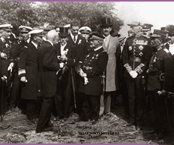 The Greek foreign policy during the period 1936-1939 shows an obvious preference to the Great Powers and resorts to their help. On the photo, military attachés and diplomats of France and Britain during a reception.