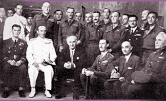 After the liberation, the Greek government asked for guarantees from the British as to the securing of the territorial sovereignty for the entire country. On the photo, the prime minister, G. Papandreou, the British general R. Scobie and other Greek officers.