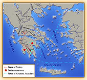 | With the arrival and settlement of the Dorians in the largest part of the Peloponnese,