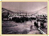 The crowd's enthusiasm reached its peak during the opening ceremony of the first International Olympic Games in the Stadium. First thing in the morning the crowd gathered in order to buy tickets. The ticket salesmen were surrounded by a noisy crowd struggling to get the best seats under police supervision in order to avoid cases of black market. People started to arrive at the stadium en masse in the afternoon. All over Athens, citizens of all ages, men and women of different classes moved towards the Stadium. Although the crowd that gathered outside Zappeion was immense the police had no problem imposing order. Armed soldiers, placed at the passageways leading to the Stadium's tiers, were responsible for imposing order inside the Stadium.