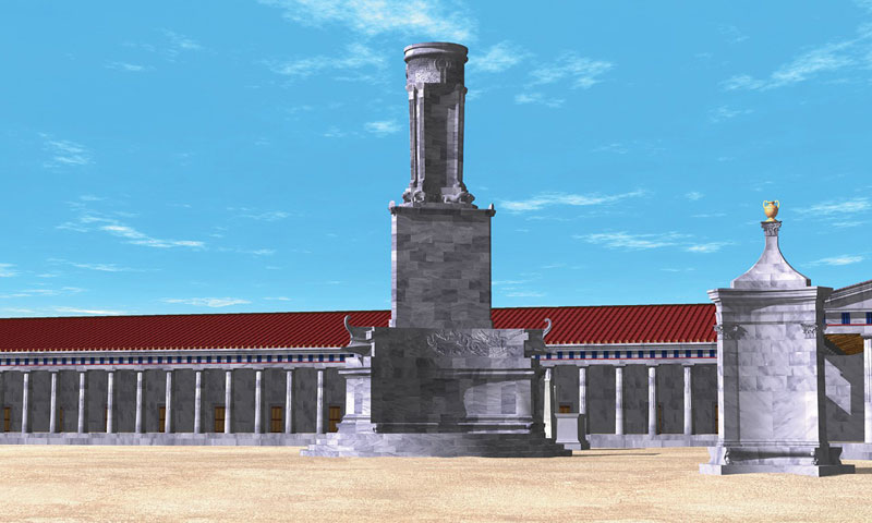 The Small Monument was situated on the south-west pier of the Harbour of Lions, in front of the west wing of the Harbour Stoa.