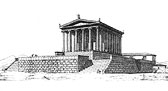 Measuring 18X35 metres, it was orientated from south to north. It consisted of a cella and a pronaos, surrounded by a pteron of Ionic order. The east and west colonnades were made up of ten columns, the north one of seven, and the south one of six columns.