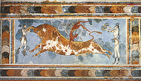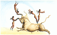 | Το άθλημα των ταυροκαθαψίων ομοιάζει με τις σημερινές ταυρομαχίες στην