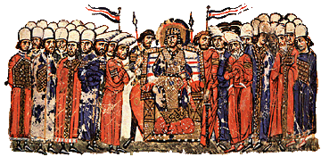 During the Late Byzantine period, the aristocracy exercised increasing control over the emperor. Here the emperor is represented seated on his throne and surrounded by higher officials.