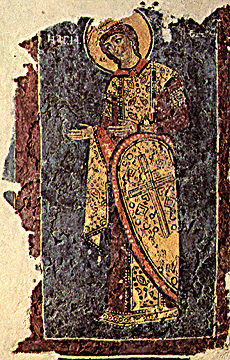 St Catherine. Wall-painting from the chapel of St Nicholas in the Cave of Mt. Pentelikon. 1230 or 1233.