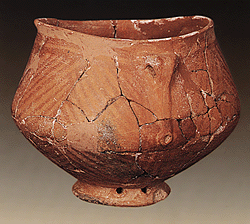 Aria, Argolid. Biconical vase with painted burnished linear decoration, in imitation of basketry models. Final Neolithic (c. 4500-3200 BC). Nauplion Museum 27512. Hellenic Ministry of Culture/ARF. Papathanasopoulos, G.Á. (ed.),