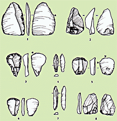 burins (3-4), blade (7), endscrapers (5,6,8).