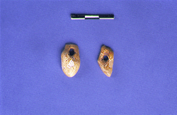 Theopetra. Pierced red deer teeth. Upper Palaeolithic. Hellenic Ministry of Culture/ARF.