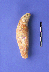 Theopetra. Tooth of a bear. Middle Palaeolithic. Hellenic Ministry of Culture/ARF.