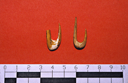 Evidence from the layers of the Mesolithic period at a depth of 1,8 m suggests that the cave was used intensively during this period and this find is particularly important for the Aegean Prehistory. Stones and animal bones confirm that hunting was practised, whereas the plant remains and many shells and snails provide evidence of continuous gathering. Hundreds of fish bones mainly of tuna, and a number of fishooks (approximately 45) in different sizes (6 mm-7 mm) indicate that intensive fishing with advanced tool equipment took place. |
