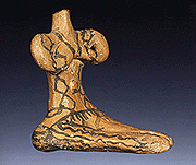 Anthropomorphic and zoomorphic figurines accompanied man at birth, in his daily life (children's toys), and in death. In figurines not only is fertility visualized (figurines of pregnant women, phalloi), but also life (women in childbirth), motherhood, animals being raised. Clay models of houses symbolized the vital core element of the settlement and were used, along with anthropomophic figurines, in symbolic acts as well, such as foundation offerings, recorded at Platia Magoula Zarkou in Thessaly. Figurines were creations either of experienced and well known craftsmen in the Neolithic settlements (e.g. vase makers) or just products of the spontaneous expression of Neolithic man. In the early phases of the Neolithic they were naturalistic, while from the Late Neolithic schematization with abstract features of men and animals predominated. |