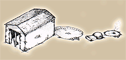Buttresses supported the roofing of the house and also facilitated food-preparation,