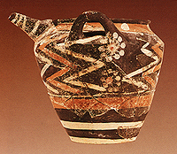 In the palace workshops where the most important styles of the Middle Minoan pottery where developed, potters exchanged ideas and constantly improved their products to perfection. The rulers of the palaces and the higher social classes seemed to prefer the impressive, sophisticated works of art which confirmed their social prestige. Thus, there is a great difference between the quality and sophistication of the palace workshops and those of the non-palatial workshops. The artistic creations of the local workshops often imitated palatial works of art. |