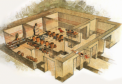 Reconstruction of the sanctuary of Anemspilia at Archanes.