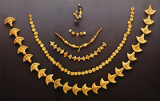 Gold necklace beads from the cemetery at Archanes Phourni, Late Minoan III period