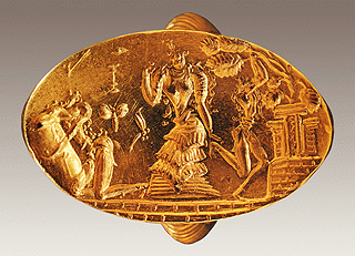 Gold seal ring with Epiphany scene, Late Minoan I period.