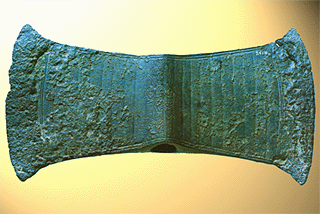 Bronze double axe with hieroglyphic script from Arkalochori cave.