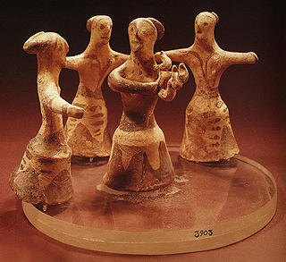 Clay model of dancing figures from Palaikastro, Post-Palatial period.