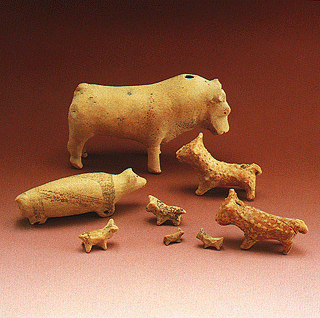 Clay animal figurines from the cemetery at Phourni, Archanes.