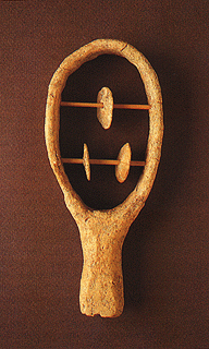 Clay sistrum from tomb building 9 of Archanes. 23rd EPCA. Ministry of Culture / Archaeological Receipts Fund.