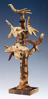 Clay model of a sacred tree with birds from Fortetsa, Late Minoan period.