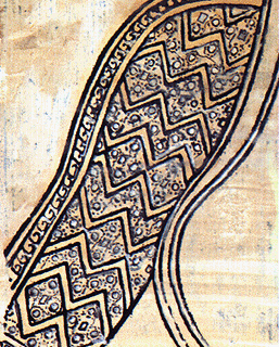 Detail from a reconstruction of part of a relief fresco with weaving patterns from Pseira.