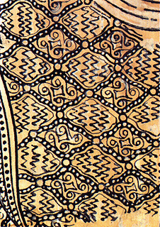 Detail from a reconstruction of part of a relief fresco with weaving patterns from Pseira