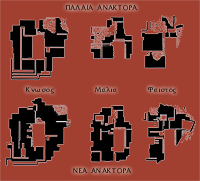 | Κατά τη μακρά διάρκεια της Μινωικής εποχής τα ανάκτορα υπέστησαν δύο μεγάλες καταστροφές που σηματοδότησαν νέες εξελίξεις στο μινωικό πολιτισμό. Η πρώτη καταστροφή προκλήθηκε από σεισμό στο τέλος της Πρωτοανακτορικής εποχής, γύρω στο 1700 π.X. Σχετικά σύντομα μετά από αυτή την καταστροφή, τα ανάκτορα ξανακτίστηκαν από τους Μινωίτες και πέρασαν στη δεύτερη, λαμπρότερή τους περίοδο, τη Νεοανακτορική. Σεισμικές μάλλον δονήσεις και πάλι, κατέστρεψαν γύρω στο 1450 π.X. οριστικά τα μινωικά ανάκτορα. Μετά από αυτή την καταστροφή, κατά τη Μετανακτορική περίοδο, και ενώ η κεντρική εξουσία βρέθηκε αποδυναμωμένη, τα περισσότερα ανακτορικά κέντρα εγκαταλείφθηκαν και μόνο στο ανάκτορο της Κνωσού συνεχίστηκε η κατοίκηση μέχρι τη μυκηναϊκή κυριαρχία. Τα ερείπια των ανακτόρων που είναι σήμερα ορατά και επισκέψιμα ανήκουν στη δεύτερη ανακτορική περίοδο. | |
