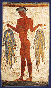 Thera, Akrotiri-West House. Fresco with fisherman. Athens, National Archaeological Museum. Hellenic Ministry of Culture/ARF.