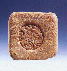 Ios, Skarkos settlement. Clay object with seal impression. Early Cycladic II period. Marthari, M., To Archaiologiko Mouseio tis Iou: Syntomi periigisi stis archaiotites tis Iou meso ton ekthematon tou Mouseiou, Hellenic Ministry of Culture-21st EPCA, Athens 1999, p. 28, fig. 21. © Hellenic Ministry of Culture |