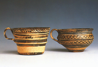 Thera, Akrotiri. Vapheio cup and one-handled semi-globular cup.