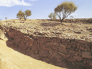 Poliochni, Red period. View of the west part of the fortification with the curvilinear bastion. Poliochni Limno en amihthaloessi. Ena kentro tis proimis epochis tou Chalkou sto Voreio Aigaio, Aegean Ministry, Hellenic Ministry of Culture-20th EPCA-Scuola Archeologica Italiana di Atene, Athens 1997, p. 93, fig. 2. © Hellenic Ministry of Culture |