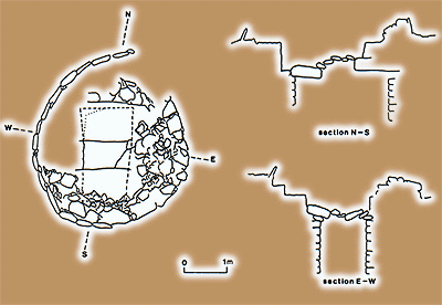 Keos, Agia Irini. Plan and section of grave 40 (after Caskey 1971, fig. 11). Late Bronze Age. Schallin, A.-L., Islands under Influence. The Cyclades in the Late Bronze Age and the Nature of Mycenaean Presence, Studies in Mediterranean Archaeology vol. CXI, Paul Astroms Forlag, Jonsered 1993, p. 97, fig. 38. © American School of Classical Studies |
