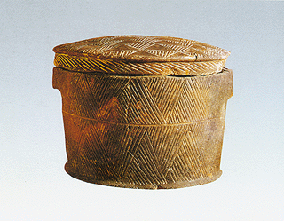 Naxos. Clay cylindrical pyxis with inclined lid. Early Cycladic I. Athens, National Archaeological Museum 6103.3. Hellenic Ministry of Culture/ARF.