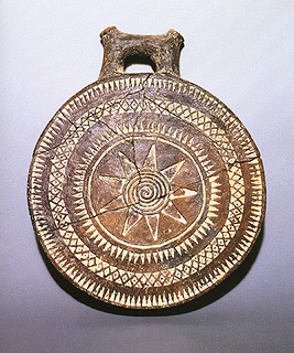 Naxos, Epano Kouphonisi. Clay frying pan with a pi-shaped handle.
