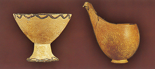Syros, Chalandriani. Pedestal bowl with painted decoration, and sauce-boat with red tinning.