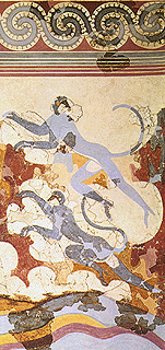 Thera, Akrotiri-Sector Beta. Part of fresco with blue monkeys (room Â6). Athens National Archaeological Museum. Hellenic Ministry of Culture/ARF.