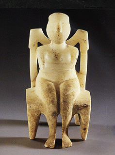 Naxos, Aplomata cemetery (grave 13). Marble figurine of a seated woman. Early Cycladic II.