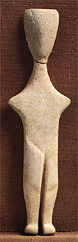 Naxos, Louros cemetery (grave 26). Marble Louros type figurine. Early Cycladic II. Papathanasopoulos, G., National Archaeological Museum: Catalogue of Neolithic and Cycladic Collections (in Greek), "Melissa" editions, Athens 1981, p. 187, fig. 104. © Hellenic Ministry of Culture |
