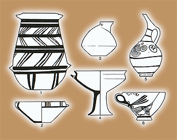 Pottery shapes of the phase Phylakopi I and of the Middle Cycladic period.