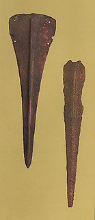 Bronze daggers. Early Cycladic II. Papathanasopoulos, G., National Archaeological Museum: Catalogue of Neolithic and Cycladic Collections (in Greek), "Melissa" editions, Athens 1981, p. 131, fig. 60. © Hellenic Ministry of Culture |