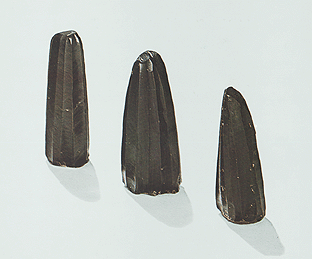 Paros, Panagia cemetery (grave 56). Obsidian cores. Early Cycladic II period. Papathanasopoulos, G., National Archaeological Museum: Catalogue of Neolithic and Cycladic Collections (in Greek), "Melissa" editions, Athens 1981, p. 121, fig. 46. © Hellenic Ministry of Culture |