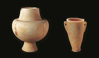 Marble footed collared jar (kandela) and marble conical cup. Early Cycladic I period. Renfrew, C., The Cycladic Spirit: Masterpieces from the Nicholas P. Goulandris Collection, H.N. Abrams, Inc., New York-N.P. Goulandris Foundation-Museum of Cycladic Art, Athens 1991 (Greek translation by K. Palyvou), p. 59, fig. 23-24. © Hellenic Ministry of Culture |