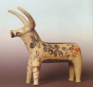 Melos, Phylakopi. Clay bovine figurine from the Late Bronze Age sanctuary.